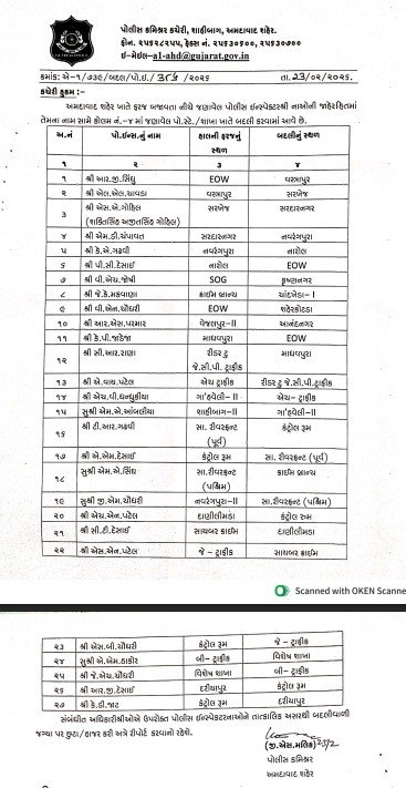 અમદાવાદ શહેરમાં પોલીસ બેડામાં મોટા ફેરફાર સામે આવ્યા છે. શહેરમાં 27 PIની બદલીના આદેશ કરવામાં આવ્યા છે. જ્યારે લિવ રિઝર્વમાં રહેલા 8 PIને નિમણૂંક અપાઈ છે. શહેરમાં વસ્ત્રાપુરના PI એલ.એલ. ચાવડાને મારામારીનો કેસ નડી ગયો હોય જેથી તેમને સજાના ભાગ રૂપે સરખેજમાં બદલી કરી દેવામાં આવી હોવાનું પોલીસ સુત્રોમાં ચર્ચાઈ રહ્યું છે. એવી પણ ચર્ચા છે કે, સરખેજ પોલીસ સ્ટેશન અમદાવાદ શહેરમાં ખૂબ ચર્ચામાં રહે છે. ત્યારે શું આ PI પણ હવે સરખેજમાં જઈને પણ ઘી કેળાં નહીં કરે એની શું ગેરંટી એવી ચર્ચાઓ પોલીસ બેડામાં શરૂ થવા પામી છે.